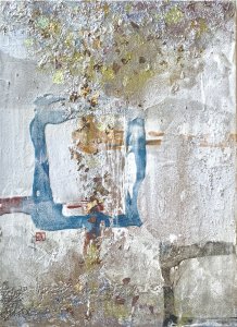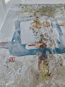 - 箔押し紙(アルミ)、アルキド樹脂、真鍮箔、アルミ箔、銅箔、岩絵具 Aluminum Leaf (Mounted on Paper), Oil-Based Alkyd Resin Paint, Brass Leaf, Aluminum Leaf, Copper Leaf, Rock Color