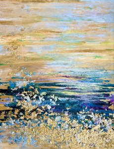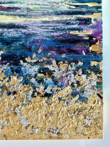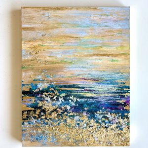 - 箔押し紙(真鍮)、アルキド樹脂、金箔、真鍮箔、岩絵具 Brass Leaf (Mounted on Paper), Oil-Based Alkyd Resin Paint, Gold Leaf, Brass Leaf, Rock Color
