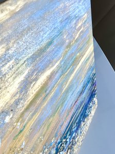 A town after the rain. Grains of light are moving to the sky, to the surface of the sea, and to the ground.
