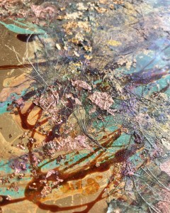 - 箔押し紙(真鍮)、アルキド樹脂、銅箔、真鍮箔、その他各種箔、岩絵具、和紙 Brass Leaf (Mounted on Paper), Oil-Based Alkyd Resin Paint, Copper Leaf, Brass Leaf, Any Leaf, Rock Color, Washi Paper
