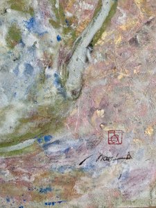 - 和紙、岩絵具、真鍮箔、アルキド樹脂、色鉛筆 Washi Paper, Rock Color, Brass Leaf, Oil-Based Alkyd Resin Paint, Colored pencils