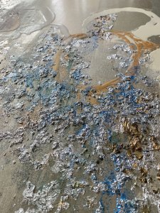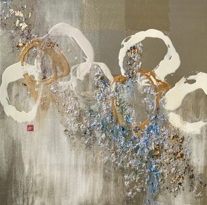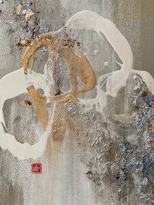 - 箔押し紙(錫)、アルミ箔、銅箔、岩絵具、アルキド樹脂 Pewter Leaf (Mounted on Paper), Aluminum Leaf, Copper Leaf, Rock Color, Oil-Based Alkyd Resin Paint