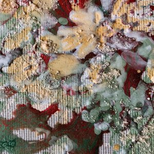- 織物貼り合わせ和紙、アルキド樹脂、岩絵具 Metal leaf paper, Oil-Based Alkyd Resin Paint, Rock Color