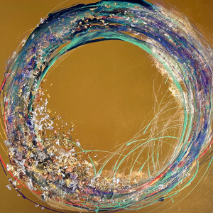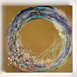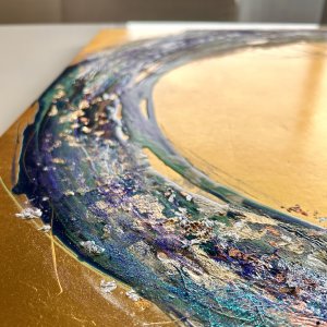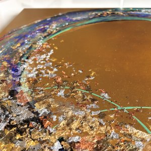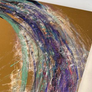 - 箔押し紙(真鍮)、金箔、銀箔、銅箔、アルミ箔、岩絵具、アルキド樹脂、和紙 Brass Leaf (Mounted on Paper), Gold Leaf, Silver Leaf (dyed), Copper Leaf, Aluminum Leaf, Rock Color, Oil-Based Alkyd Resin Paint, Washi Paper