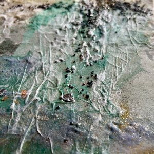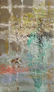 - 箔押し紙(錫)、岩絵具、和紙、蓄光顔料 Pewter Leaf (Mounted on Paper), Rock Color, Washi Paper, Phosphorescent Pigment