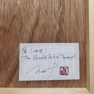 納屋から見つかった小ぶりな盾のようなもの。 一説によると、装飾品に見せかけた地図ではないかと言われている。 どこが示されているのか、その場所に何があるのか、まだ解読はされていない。