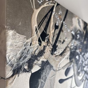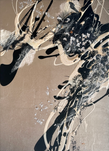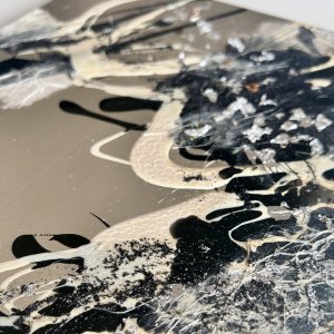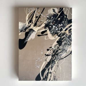 - 箔押し紙(アルミ)、アルキド樹脂、アルミ箔、銅箔、真鍮箔、岩絵具、和紙 Aluminum Leaf (Mounted on Paper), Oil-Based Alkyd Resin Paint, Aluminum Leaf, Copper Leaf, Brass Leaf, Rock Color, Washi Paper