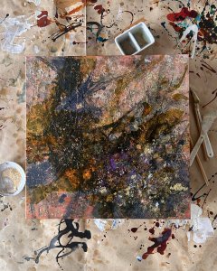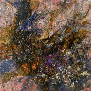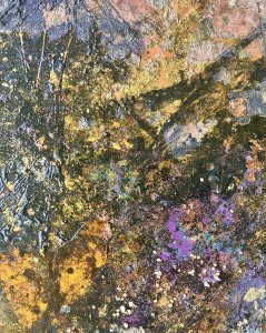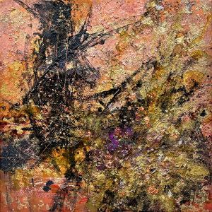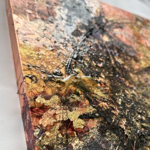 - 箔押し紙(銅)、アルキド樹脂、銅箔、真鍮箔、岩絵具、和紙 Copper Leaf (Mounted on Paper), Oil-Based Alkyd Resin Paint, Copper Leaf, Brass Leaf, Rock Color, Washi Paper