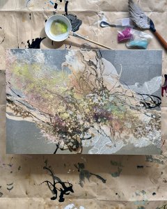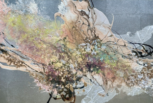 - 箔押し紙(アルミ)、アルキド樹脂、金箔、真鍮箔、アルミ箔、銅箔、岩絵具、和紙 Aluminum Leaf (Mounted on Paper), Oil-Based Alkyd Resin Paint, Gold Leaf, Brass Leaf, Aluminum Leaf, Copper Leaf, Rock Color, Washi Paper