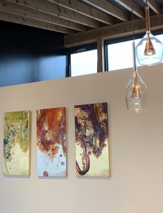 作物の色付きは、太陽や土からの「報せ(しらせ)」であると考えました。穏やかで逞しく、リズミカルな美しさの中にある醸造所レストランの為の作品です。